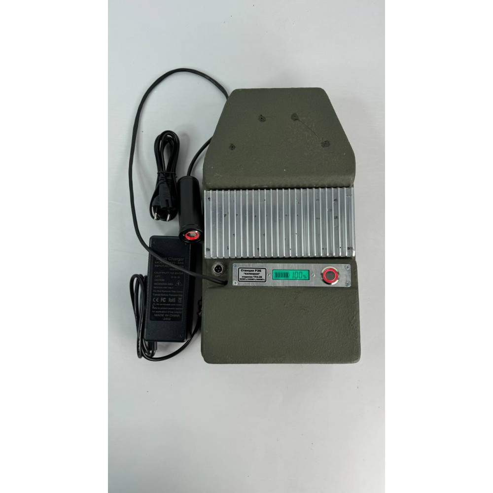 Станция оснащена встроенным литий-ионными аккумуляторам емкостью 28 А/ч, который обеспечивает до 5 часов непрерывной работы каждый. В комплект входит зарядное устройство, которое подключается к сети переменного тока 220 В, что позволяет быстро восстановить заряд аккумулятора и продолжить работу без длительных перерывов.